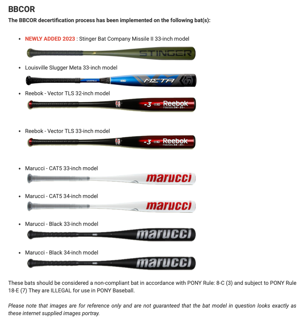 【球棒规定】2025-2026年度PONY小马棒球联赛决赛比赛球棒的相关规定