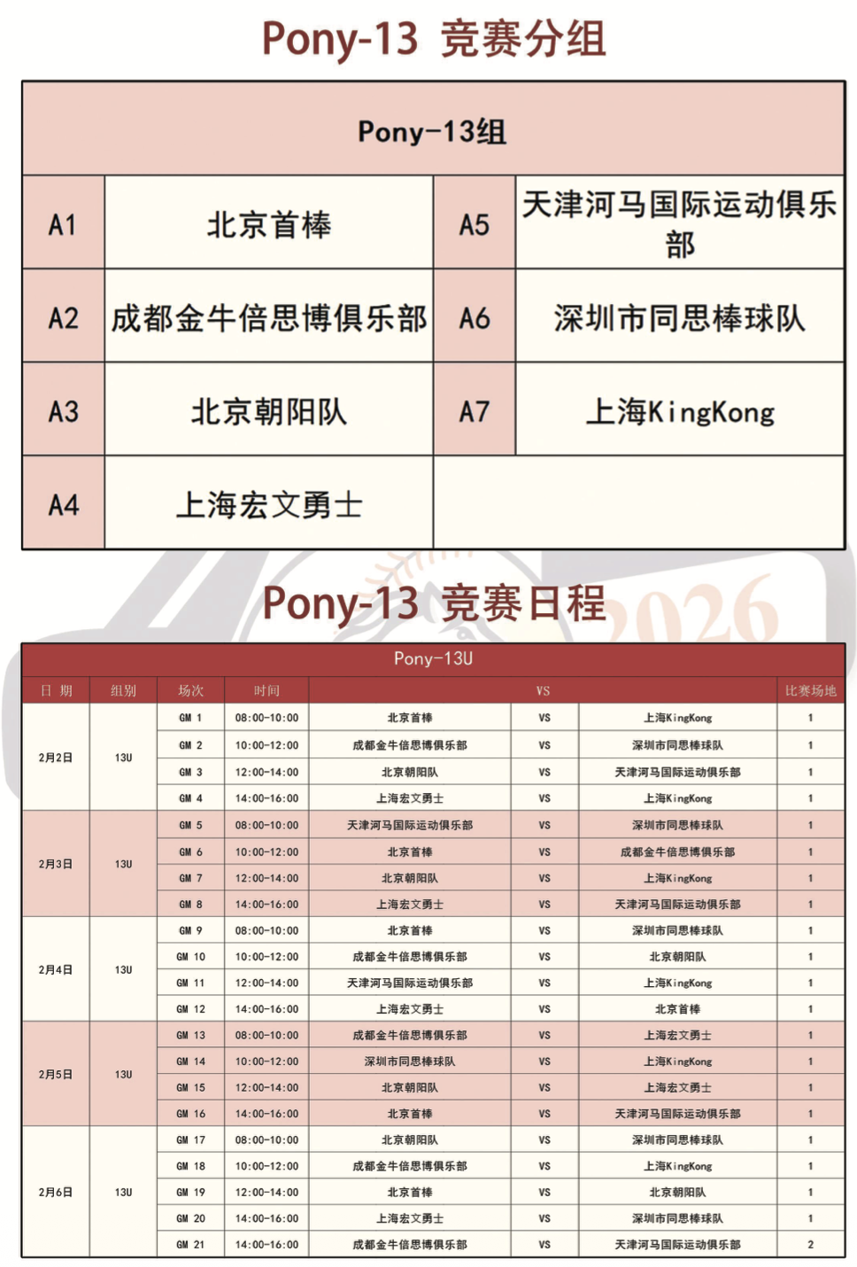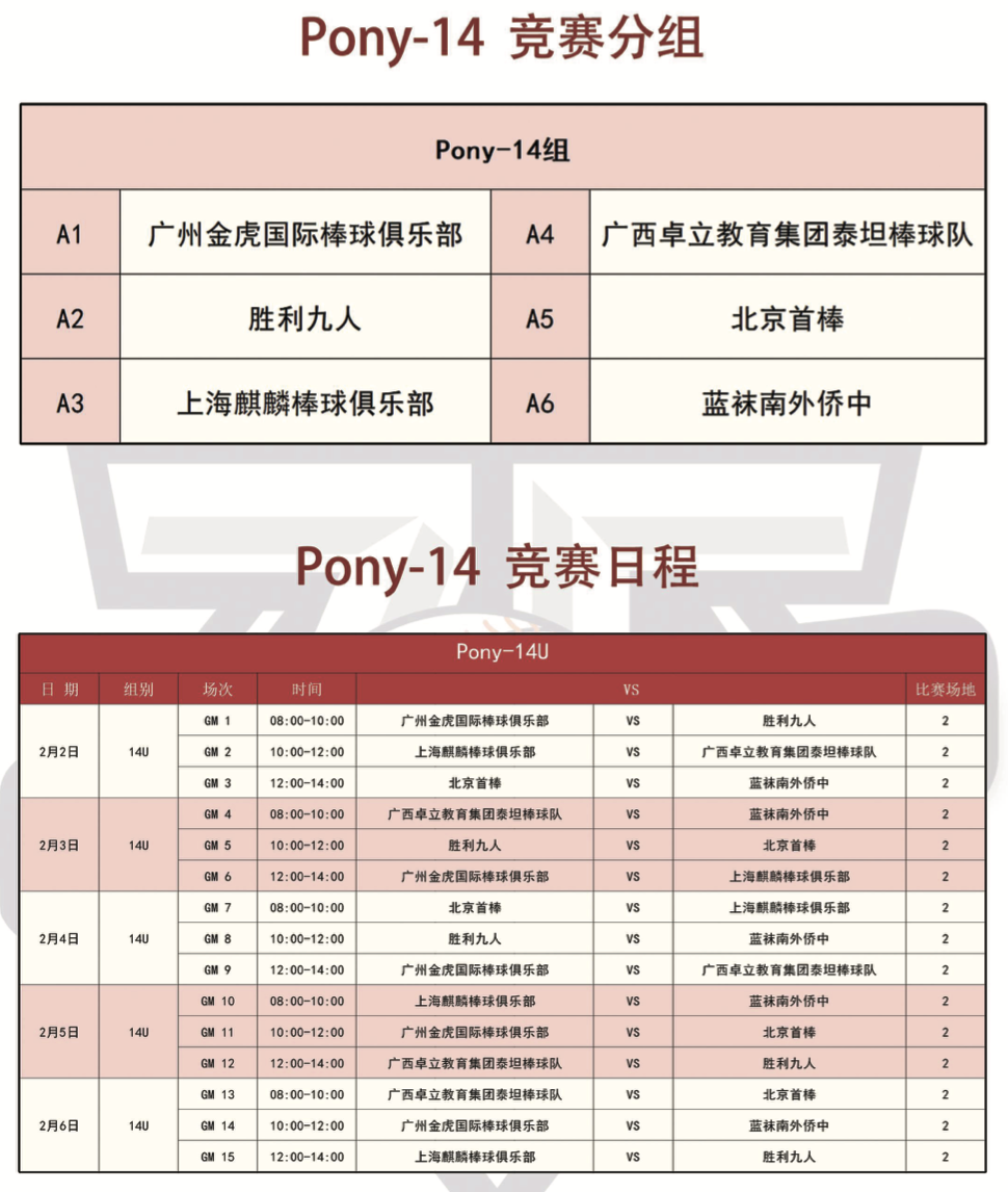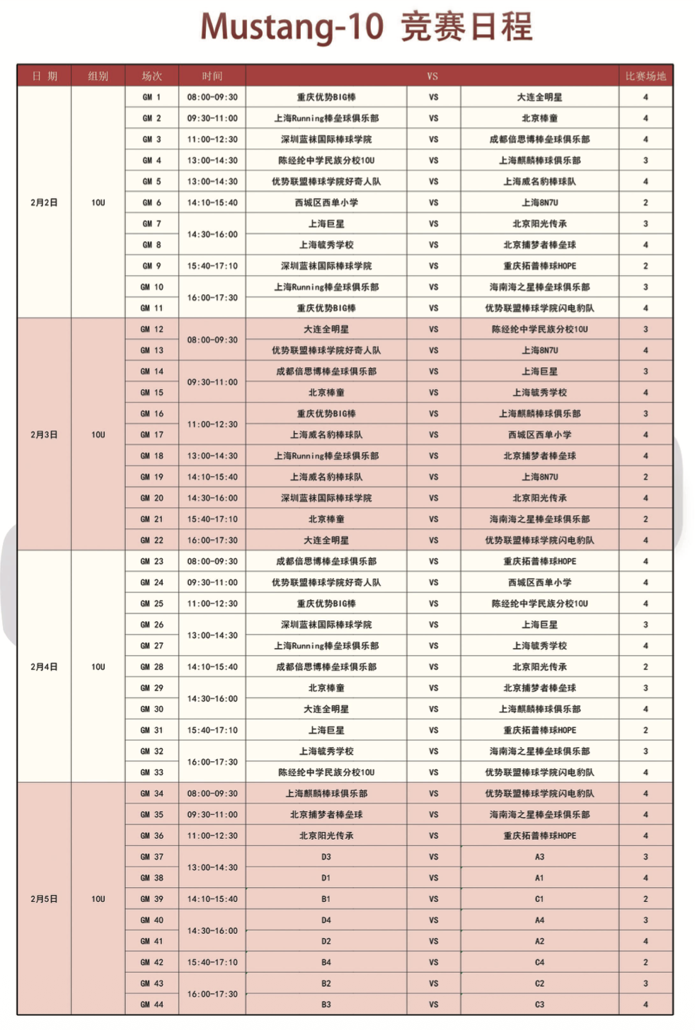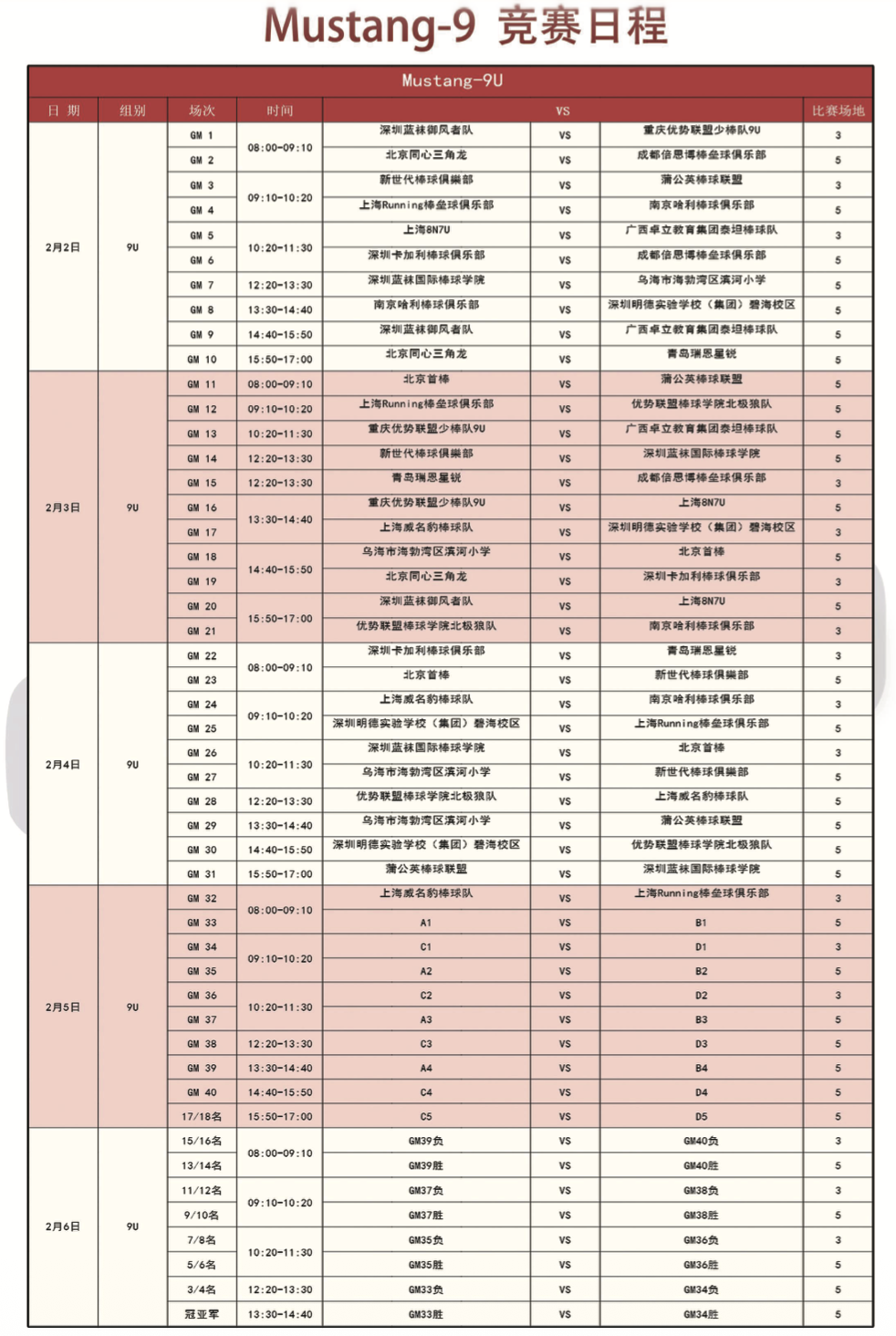 各组竞赛日程